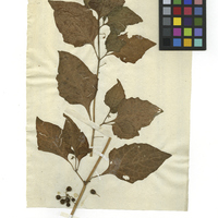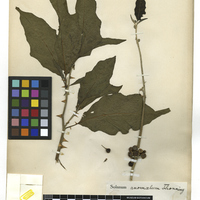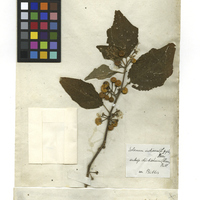 | Solanum indicum subsp. distichum (Schumach. & Thonn.) Bitter [Solanaceae] | Peter Thonning | southern part of the country [Ghana] | Label1: Solanum distichum Thonning e Guinea Thonning Label2: Solanum indicum (L. p.pte.) Nees subsp. distichum (Thonn.) Bitt. det. Bitter IDC mi... | |
