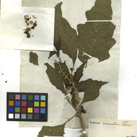 | Solanum anomalum Thonn. [Solanaceae] | Peter Thonning | southern part of the country [Ghana] | On sheet: leg. Thonning in Guinea Label1: S. umbr. Vahl tetrandrum Thon Label2: Solanum anomalum Thonning det. Bitter IDC microfiche foto: Isert... | |