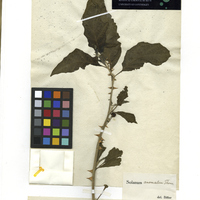 | Solanum melongena L. [Solanaceae] | Peter Thonning | southern part of the country [Ghana] | IDC microfiche foto: Isert et Thonning nr. 102 II 5-6 | |