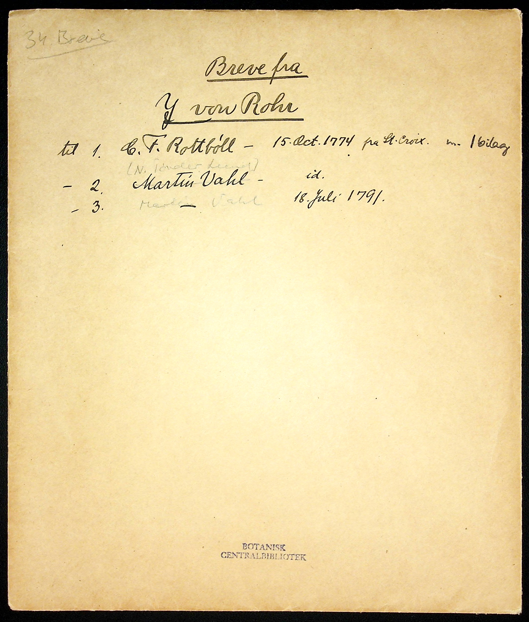 J.P.B. von Rohr to N. Tønder Lund on 1774-10-15: Page #5 Original title: NHMD_34_L_J_P_B_von_Rohr_999_2.jpg Transcribe Browse revision history View notes 5 of 6 Reset Transcription [No transcription] Metadata